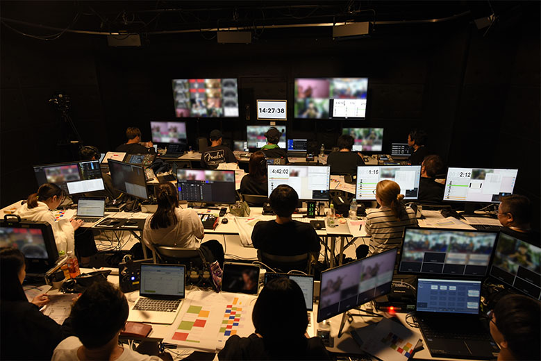 Audio and video are transmitted from Naeba to the Tokyo studio, edited there, and then returned to Naeba as a multiview feed. On-site, final checks can be performed with extremely low latency of less than 8 milliseconds. Because the studio’s audio system is Dante-based, the workflow remains fully integrated without any conversion.