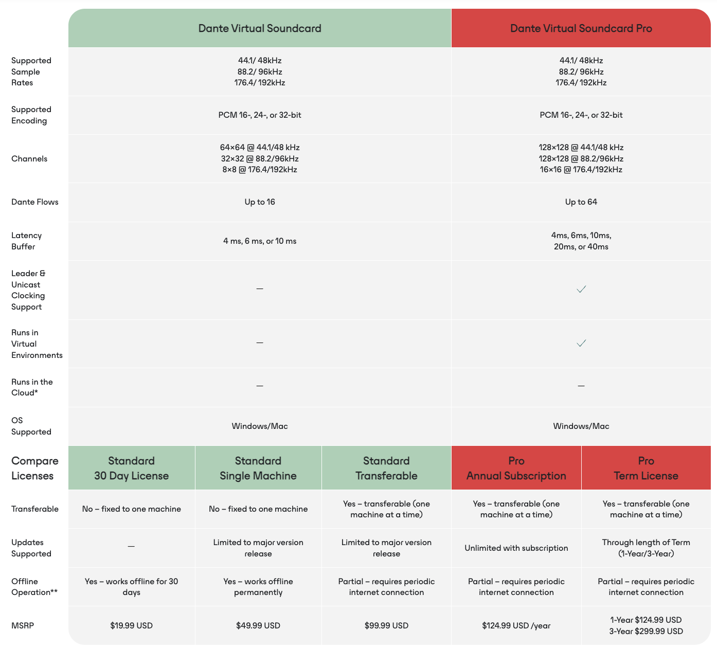 Note: Dante-enabled Product Support