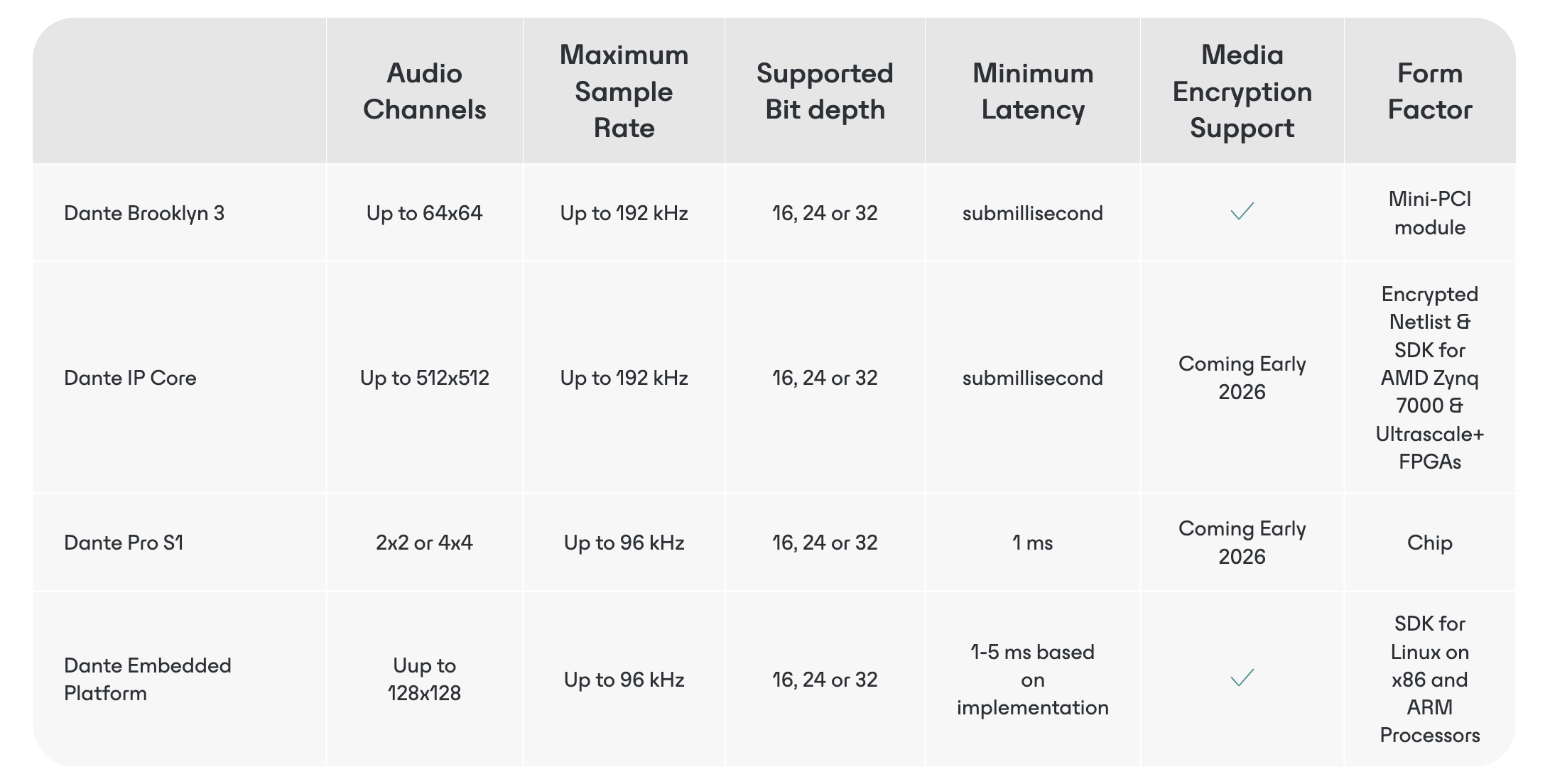 Choose a Dante embedded solution for the distribution of real time, synchronised, super low-latency data across IP networks.